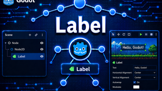はじめにゲームのHPバー上に「HP: 100/100」と表示したい、または画面に説明文を出したいなど、テキストを画面に表示する場面は多くあります。Godotで文字列を表示するなら、まず最初に出会うのがLabelノードです。この記事では、La...