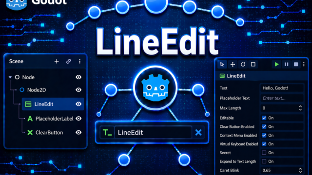はじめにゲーム画面にボタンやテキストを配置していると「複数のUI要素を上から下へ、ピッタリ並べたい」という場面がよくあります。VBoxContainerは、子要素を自動的に上下方向に整列させてくれるコンテナノードです。この記事では、VBox...