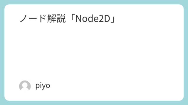 Node解説 ノード解説「Node2D」 はじめにGodot 4で2Dゲームを作ろうと思ったとき、キャラクターやアイテム、背景を画面上に配置するには?そこで活躍するのが Node2D です。この記事では、Node2Dの役割、使い方、カスタマイズ方法まで、完全初心者向けに丁寧に解説し... 2026.04.07 Node解説