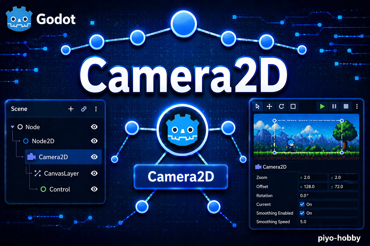 ゲームのHPバー上に「HP: 100/100」と表示したい、または画面に説明文を出したいなど、テキストを画面に表示する場面は多くあります。Godotで文字列を表示するなら、まず最初に出会うのがLabelノードです。